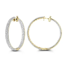 Large 5 Carat Diamond Hoop Earrings For Women 14K Yellow Gold Inside Out Style