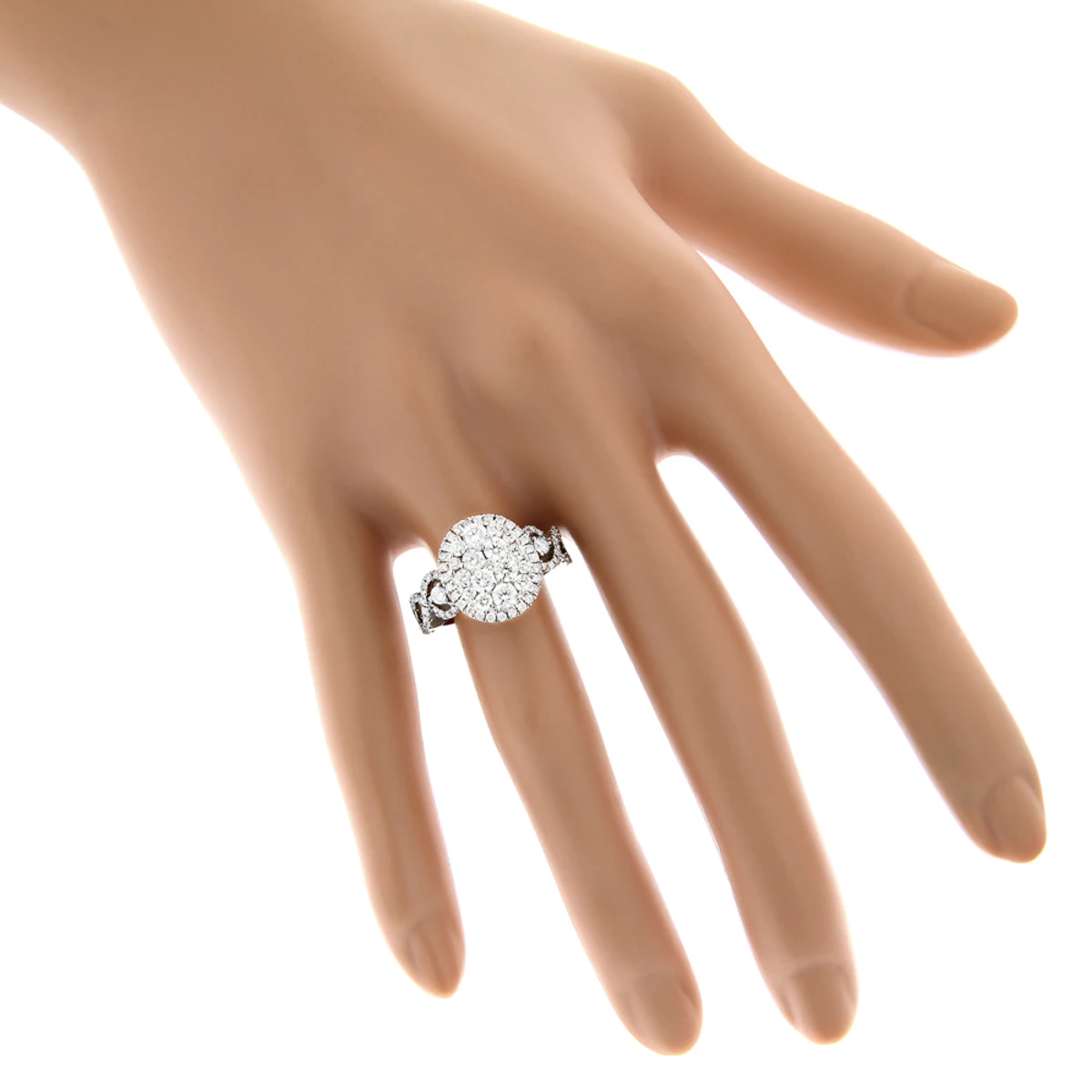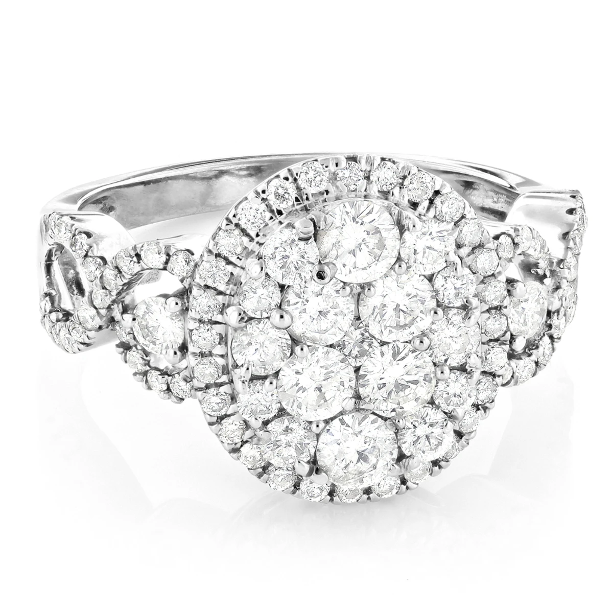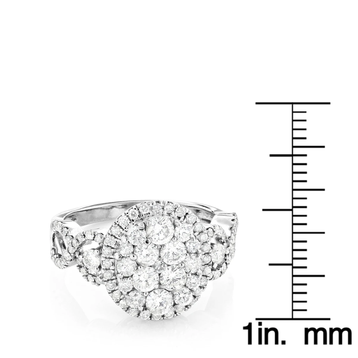 Large Diamond Cluster Engagement Ring 1.7ct 14K White Gold