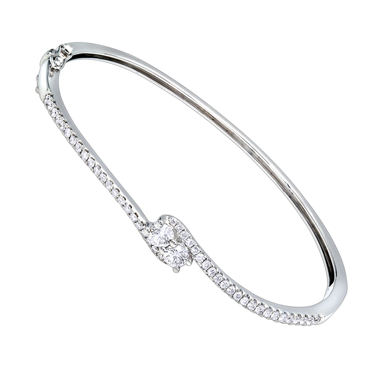 Love And Friendship Women’s Diamond Bangle Bracelet 14K White Gold 1.1ct Luxurman