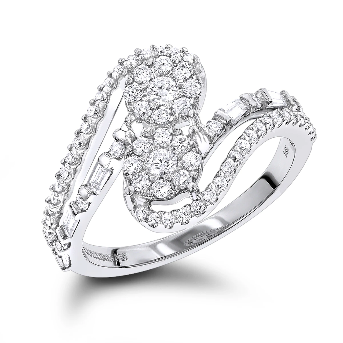 LUXURMAN Unique Women’s 14K White Gold 2 Cluster Diamond Ring 0.8ct