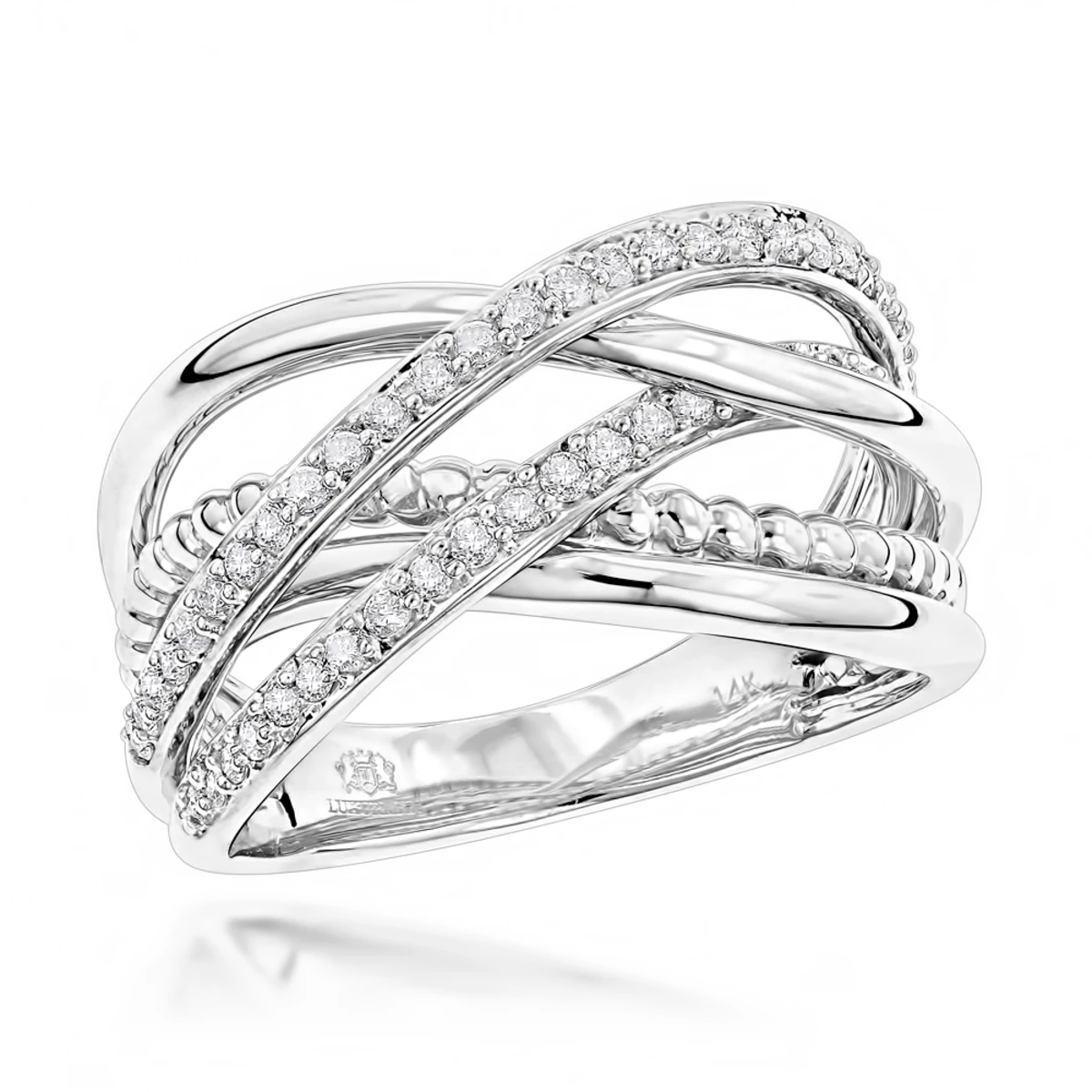 LUXURMAN Right Hand Rings: This beautiful Women’s Diamond Ring showcases a unique design and is decorated with 0.45 carats of sparkling round diamonds. Featuring a luxurious design and a highly polished gold finish, this right-hand diamond ring for women is available in white gold, yellow gold and rose gold.