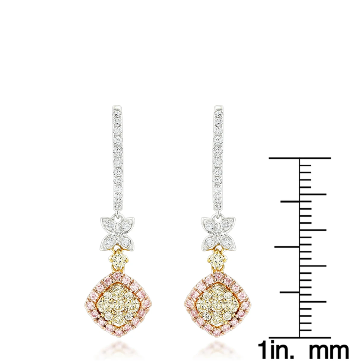 Luxurman White Yellow Pink Diamond Drop Earrings For Women 1.4ct 14K Gold
