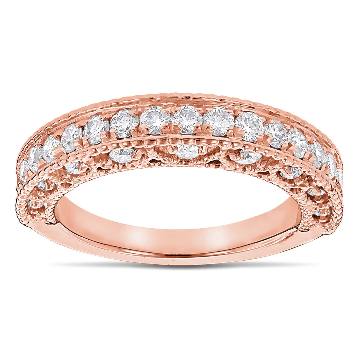 Milgrain & Filigree Designer Diamond Wedding Band For Her 1 Carat 14K White Gold