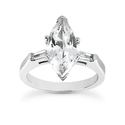 This Platinum Diamond Engagement Ring showcases a 1 carat marquise cut diamond in the center and 0.16 carats of baguette cut diamonds on the sides for a total of 1.16 carats of dazzling diamonds and is available in Platinum, 18k or 14k yellow, rose, white gold, various sizes, and can be customized with any color and quality diamonds. Center diamond can be from 0.40ct to 4.50ct (platinum weight and number of stones may vary). Please note: it will take us 3-5 business days to make this ring for you so please plan accordingly. Please contact us at 212-398-3123 if your size or desired option is not listed.