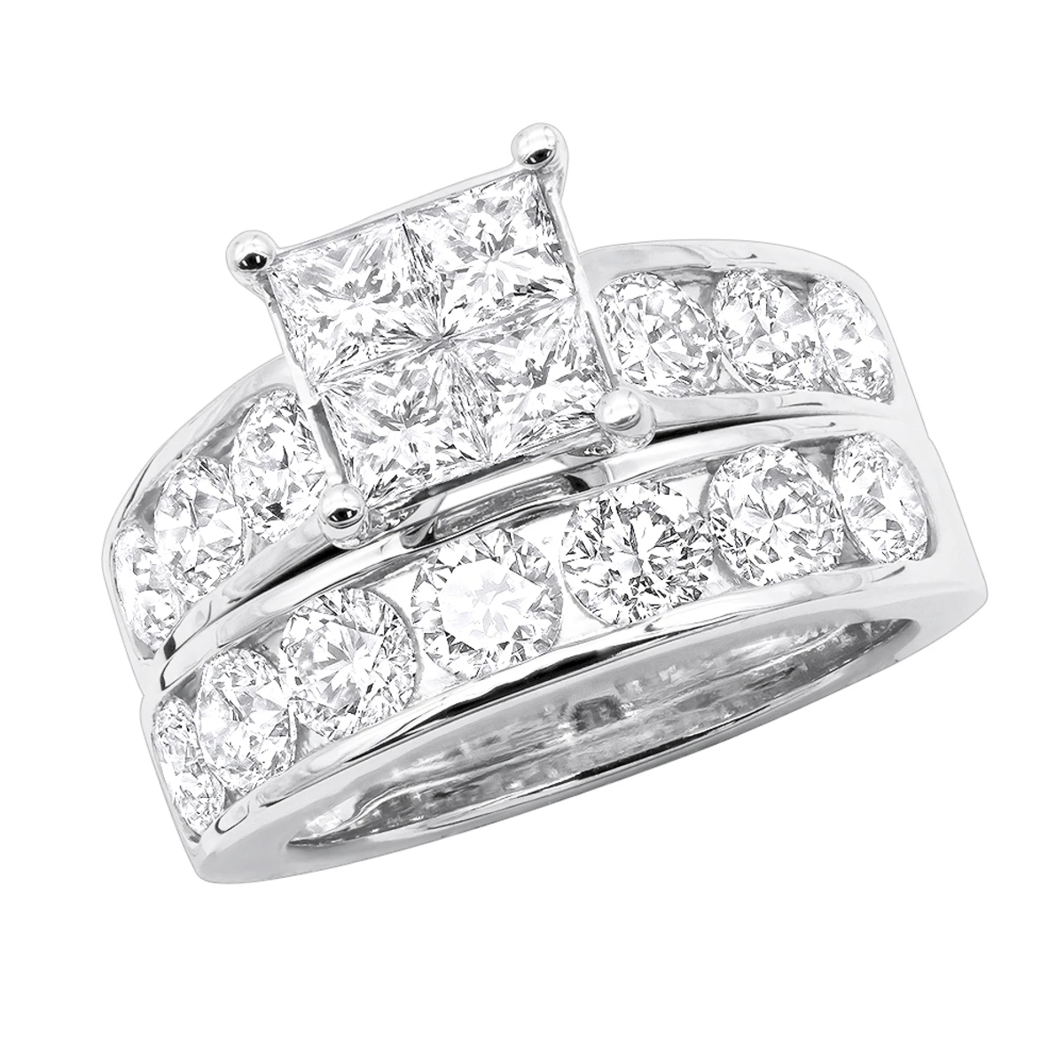Round And Princess Cut Large Diamond Engagement Ring Set 4ct 14K White Gold