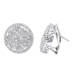 These Luxurious Round and Princess Cut Diamond Stud Earrings in 14K gold showcase 2.82 carats of fabulous diamonds and a versatile circle design; princess cut diamonds are set using invisible setting without visible prongs and round diamonds are set around them in a pave setting. These diamond earrings are available in 14K white, yellow and rose gold. Perfect gift for any occasion!