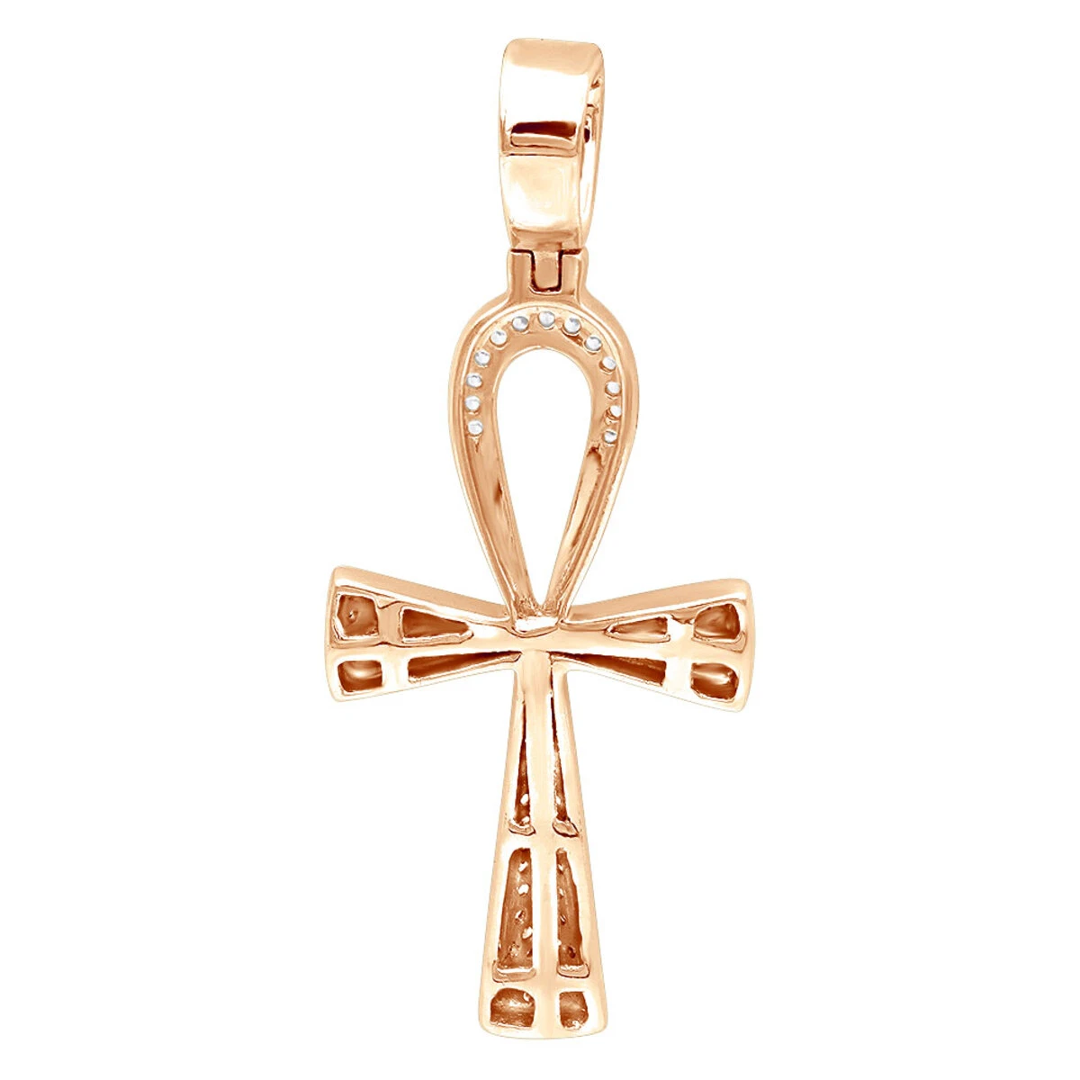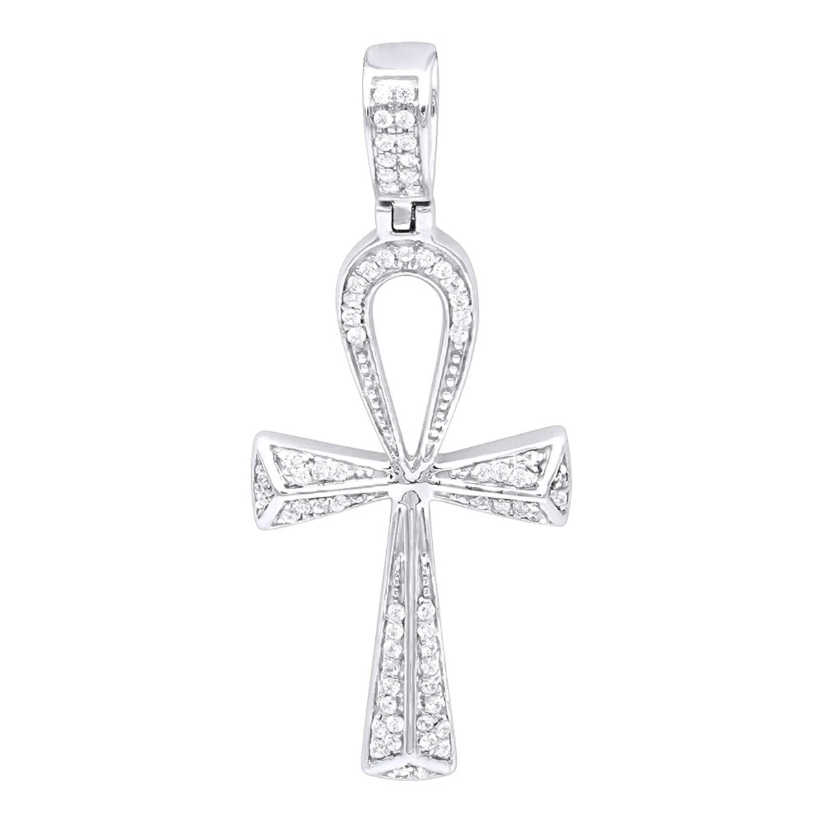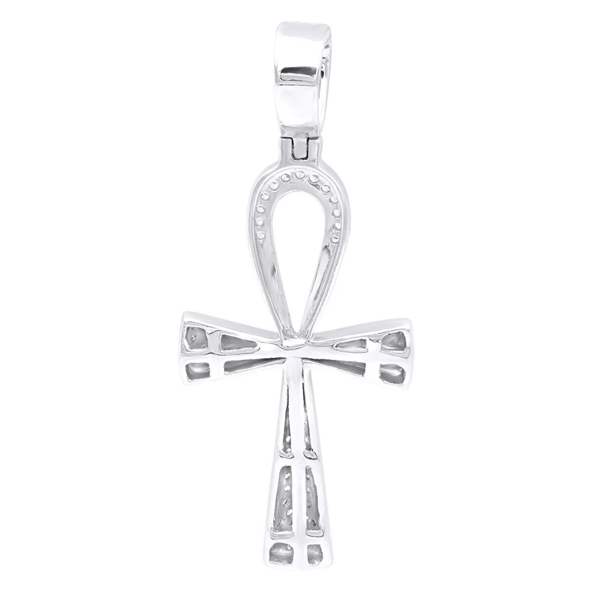 Small Egyptian Ankh Diamond Cross Pendant 14K White Gold Symbol Of Life 0.2ct