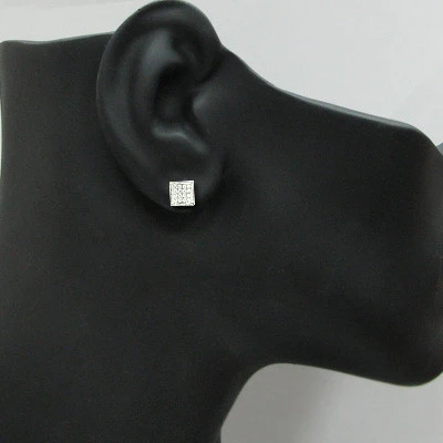 Square Diamond Stud Earrings For Men And Women 14K White Gold 1.2ct Pave Diamonds