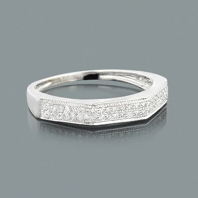Thin 10K White Gold Ladies Diamond Wedding Band 0.20ct