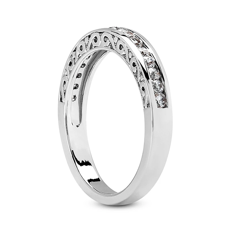 Thin 14K White Gold Antique Diamond Engagement Band 0.34ct