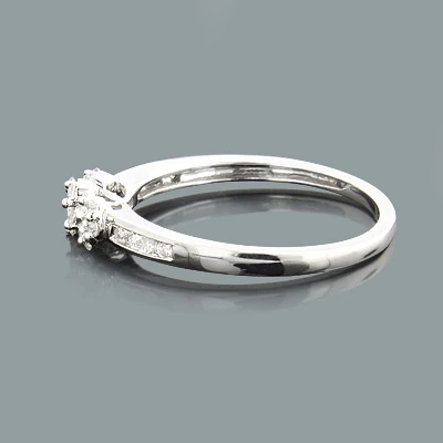 Thin 14K White Gold Cluster Diamond Flower Ring 0.34ct For Ladies