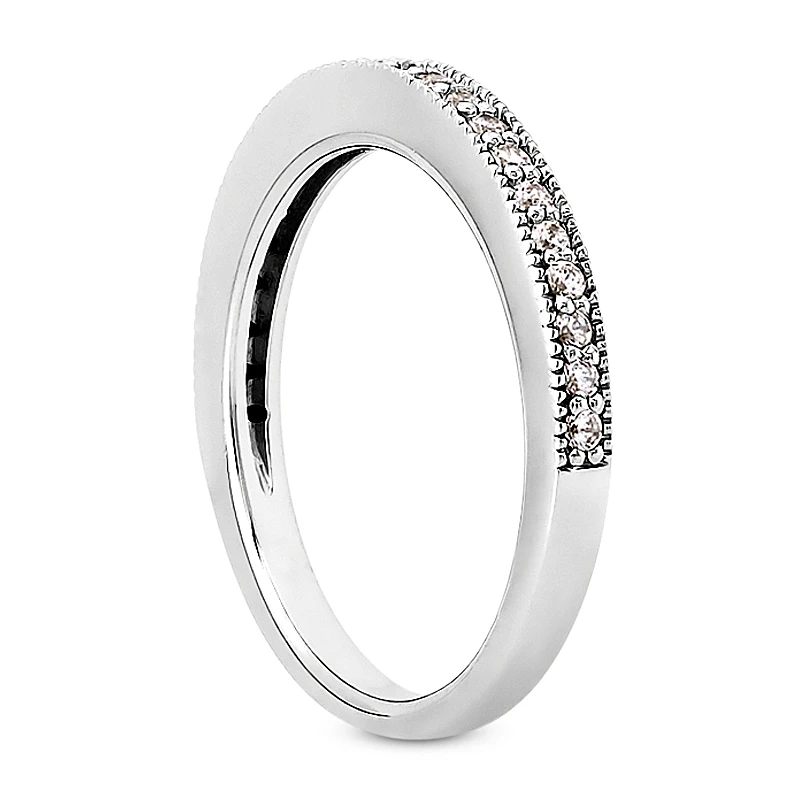 Thin 14K White Gold Unique Diamond Engagement Band 0.23ct 2.6mm