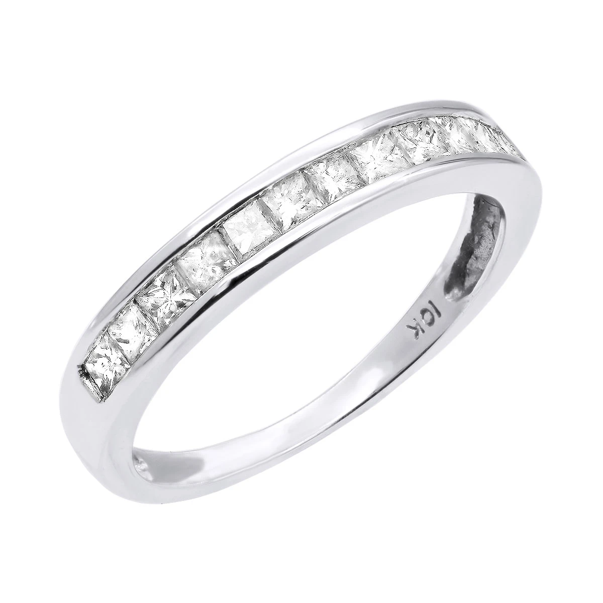 Thin Ladies Wedding Band With Princess Cut Diamonds 1 Carat 10K Gold