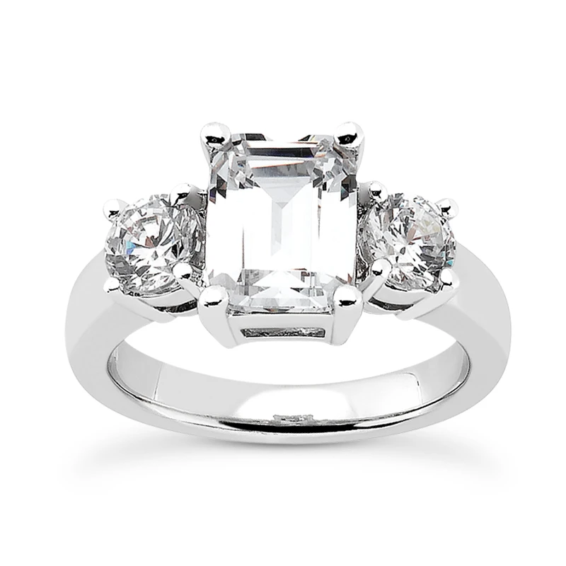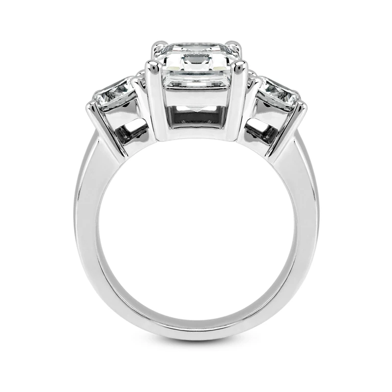 This Platinum Diamond Three Stones Engagement Ring showcases a 0.50 carat emerald cut diamond in the center and 0.20 carat of round diamonds on the sides for a total of 0.70 carat of dazzling diamonds and is available in Platinum, 18k or 14k yellow, rose, white gold, various sizes, and can be customized with any color and quality diamonds. Center diamond can be from 0.50ct to 3ct (gold weight and number of stones may vary). Please note: it will take us 3-5 business days to make this ring for you so please plan accordingly. Please contact us at 212-398-3123 if your size or desired option is not listed.