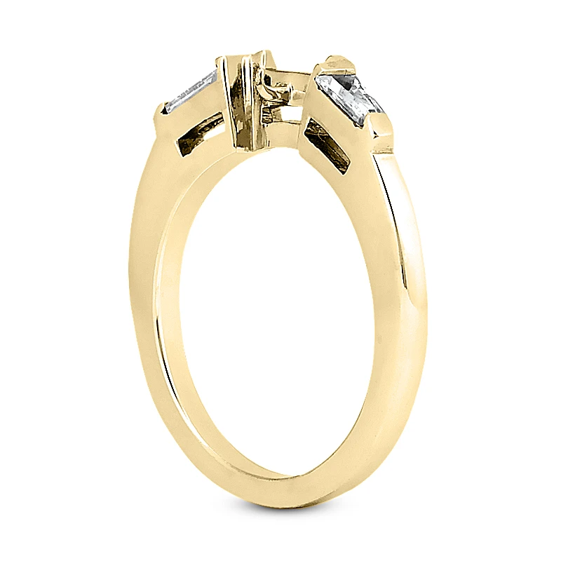 This 14K Gold Diamond Designer Engagement Band showcases 0.12 carats of dazzling baguette cut diamonds and is available in Platinum, 18k or 14k yellow, rose, white gold, various sizes, and can be customized with any color and quality diamonds. Please contact us if you would like to customize it.