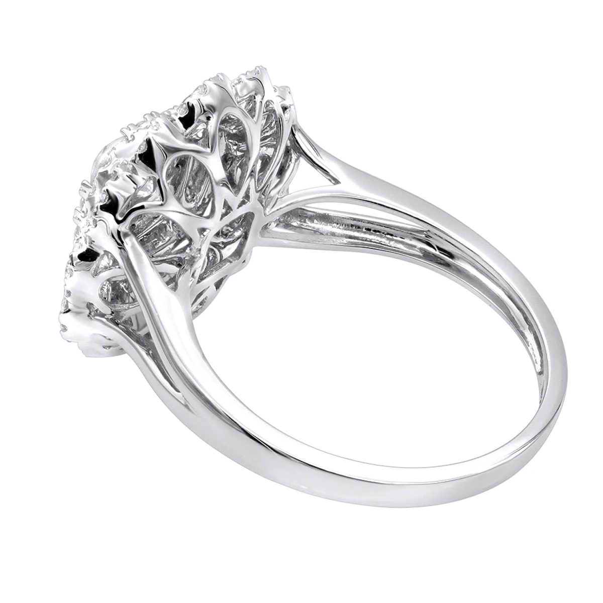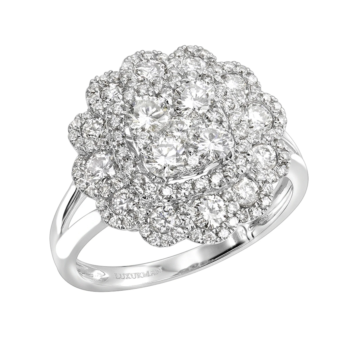 Unique 14K White Gold Diamond Cluster Flower Ring For Women 1.5ct By Luxurman