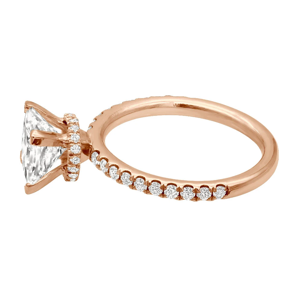 Behold the epitome of love and devotion: our Princess Cut Diamond Engagement Ring. Designed to capture hearts and dreams, this enchanting ring showcases a mesmerizing princess-cut diamond, exuding brilliance from every angle. Expertly crafted in enduring precious metal, its elegant and contemporary setting symbolizes the promise of forever. Each facet of the diamond reflects the depth of your affection, evoking a sense of wonder and joy. The band and the prongs are also intricately encrusted with round diamonds. Make your moment truly unforgettable with this ring that celebrates the uniqueness of your love story, a timeless symbol of your commitment and shared journey ahead.