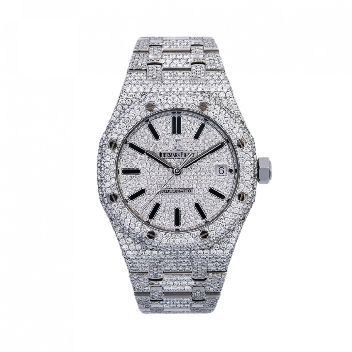 Unisex Diamond Watch Audemars Piguet Royal Oak Selfwinding Silver Tone Dial