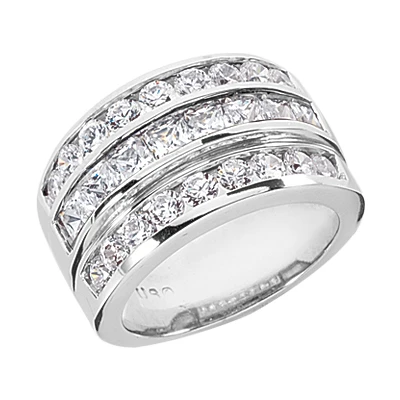 Wide 14K White Gold Women’s 3 Row Diamond Ring 2.62ct
